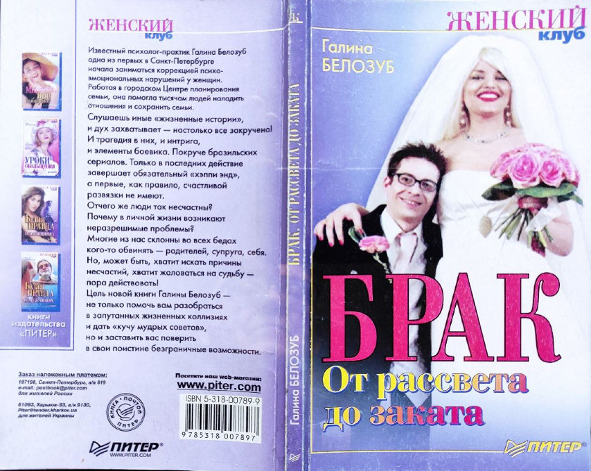 1. Брак. От рассвета до заката – Белозуб Галина, 2002, “Питер”, мягкая обложка, стр. 187, с ч/б рисунками, формат: 125 x 201 мм, вес: 117 г, тираж: 20 000 экз. Состояние: ближе к отличному.